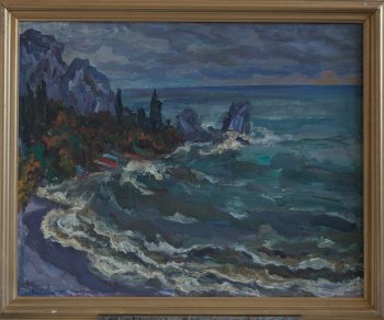 Скалы и море.(Гурзуф. Чёрное море). 1991г. Холст, масло. 80х100