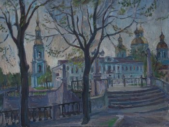 Вечер белой ночи.Никольский собор. 1987г. Холст, масло. 60х80