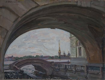 Весна.Мойка. Б. Конюшенный мост. 1988г. Холст, масло. 50х70