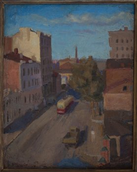 Сентябрь.Лесная ул. 1947г. Фанера, масло. 63х49,5
