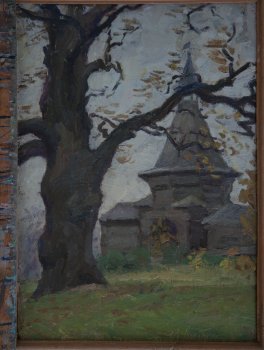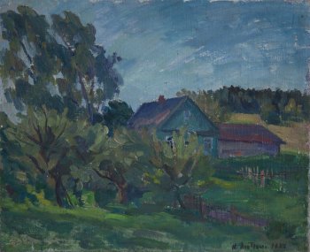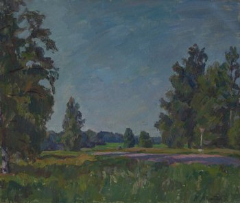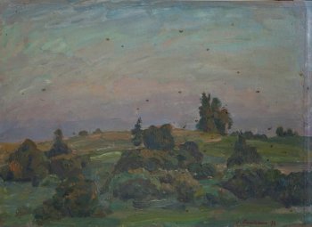 Вечер (Михайловское). 1984г. Фанера, масло. 43,5х62