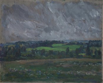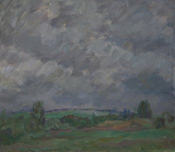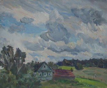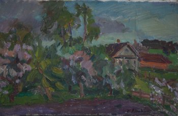 В дождь (Михайловское). 1984г. Фанера, масло. 40х50