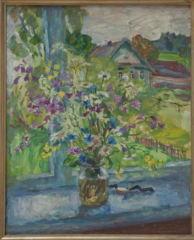 Полевые цветы (Михайловское). 1990г. Фанера, масло. 80х65