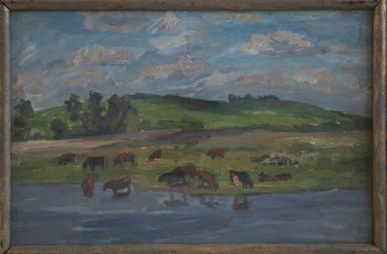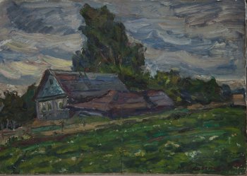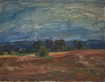 Михайловское. 1987г. Оргалит, масло. 40х62,5