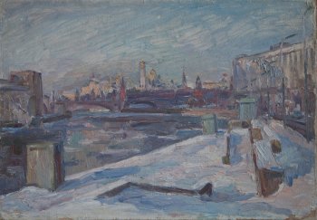 Набережная Москва-реки. 1986г. Оргалит, масло. 50х70