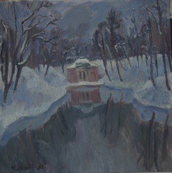 Зима в Нескучном саду. 1981г. Фанера, масло. 57,5х57,5