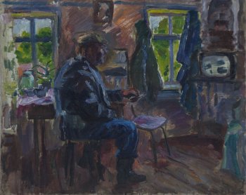 Михайловское.Валентин Николаевич Алексеев дома. 1993г. Холст, масло. 56х70