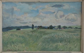 Рожь. 1972г. Фанера, масло. 59х85