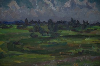 Болото (Михайловское). 1990г. Оргалит, масло. 40,5х62,5