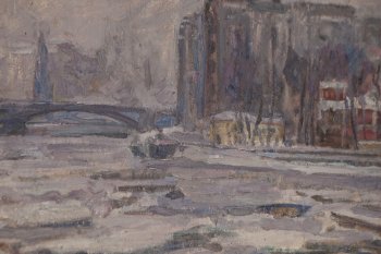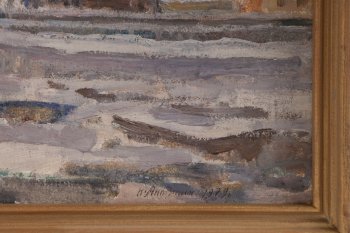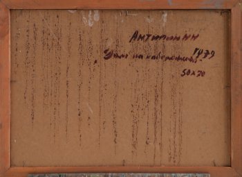 Дом на набережной. 1979г. Фанера, масло. 50х70