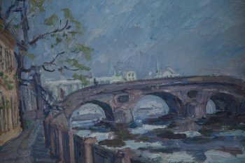 Ледоход на Фонтанке. 1987г. Фанера, масло. 60х80