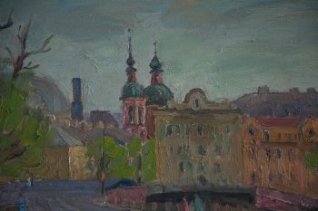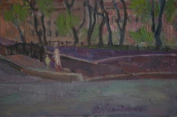 Ленинград.Лебяжий мост. 1981г. Холст, масло. 50х100