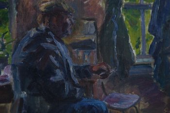 Михайловское.Валентин Николаевич Алексеев дома. 1993г. Холст, масло. 56х70
