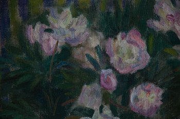 Пионы утром (Михайловское). Холст, масло. 50х80