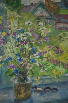 Полевые цветы (Михайловское). 1990г. Фанера, масло. 80х65