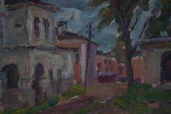 Псков. Палаты купца Меньшикова. 1994г. Картон, масло. 32,5х42,5