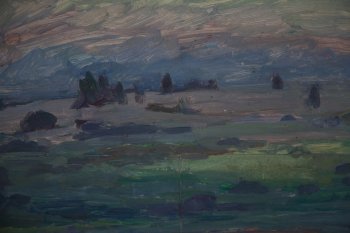 Раннее утро (Михайловское). 1998г. Картон, масло. 48х70