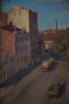 Сентябрь.Лесная ул. 1947г. Фанера, масло. 63х49,5