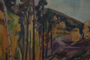 Сибирь.Дорога на Братск. 1964г. Акварель, бумага. 36х45,5