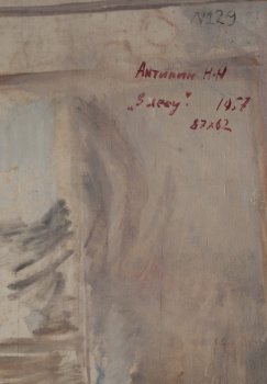 В лесу. 1957г. Фанера, масло. 87х62