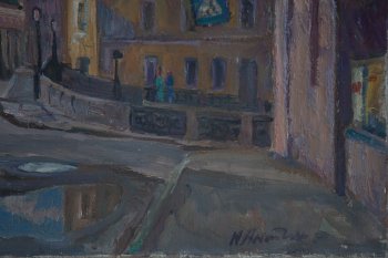Весна.Мойка. Б. Конюшенный мост. 1988г. Холст, масло. 50х70