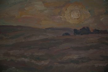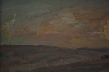 Восход солнца.Роса. Рожь. Фанера, масло. 42х59,5